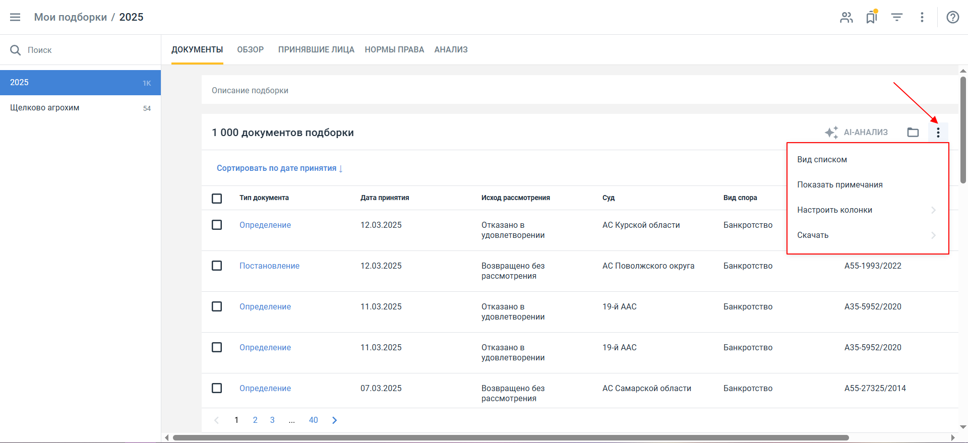 - Проанализировать документы и быстро найти нужные с помощью функции AI-анализ.