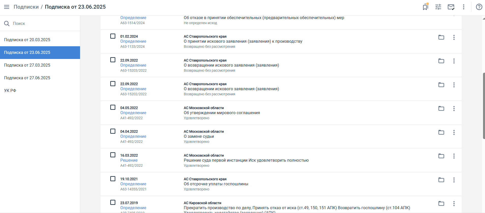 - Найдите нужные вам судебные акты и откройте форму превью/просмотра документа.