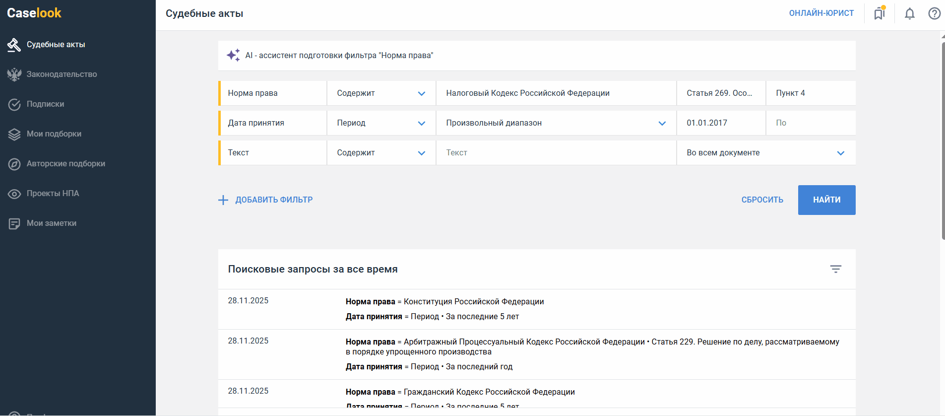 В подписке в любой момент поменять параметры отслеживания новых документов. Для этого перестройте фильтры аналогично действиям при поиске.